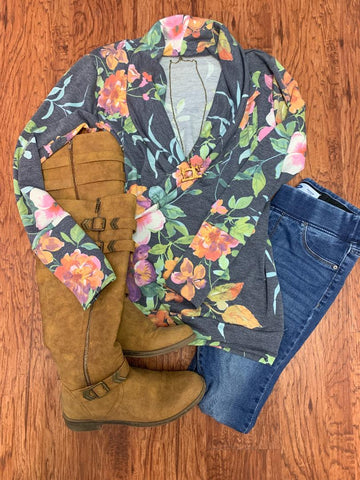 First up, I love cross-front tops. I’ve always found it to be a flattering style for myself, as well as flattering on many other body types. This type of top just pulls to the side to feed your little boob goblin, then goes right back when you’re done to cover back up. Easy peasy! One of my favorite cross-front patterns is the Halla Cozy Wrap Sweater (aff link: http://lddy.no/4j40). This is actually a cardigan pattern, but includes an option for a sweater that crosses in the front and is SO cozy, just as the name suggests! I love making them in French Terry for winter, and the navy Cynthia was perfect. Bonus, they’re also great for snuggling little people skin to skin!